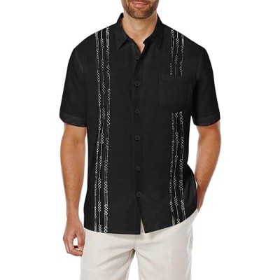 Mens Cuban Guayabera Shirt Short Sleeve Linen Button Down Shirts Casual Summer Beach Tops