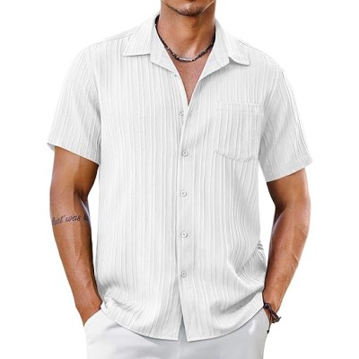 Men's Short Sleeve Casual Button Down Shirts Textured Summer Beach Shirt with Pocket
