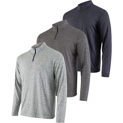 3 Pack: Men's Dry-Fit Active Quarter Zip Long Sleeve Athletic Performance Pullover (Available in Big & Tall)
