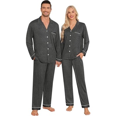 Matching Couple Christmas Pajamas Set Modal Long Sleeve Button-Down Sleepwear Family Festival Party Xmas PJs Sets