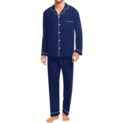 Men Pajamas Set Comfy Modal Pjs Button Down Sleepwear 2 Piece Long Sleeve Lounge Set Soft Nightwear with Pockets