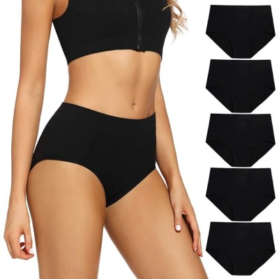 5 Pack Womens Cotton High Waisted Full Coverage Underwear(Regular & Plus Size)