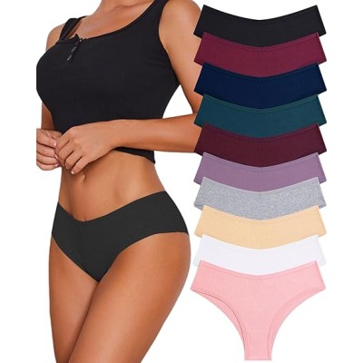 10 Pack Womens Cotton Underwear Sexy Stretch V-Waist Ladies Bikini Panties Low Rise Cotton Cheeky Hipster S-XXL