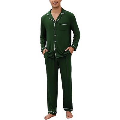Mens Pajamas Set Long Sleeve Soft Pajamas for Men Button Down Sleepwear Pjs Lounge Sets with Pockets S-2XL