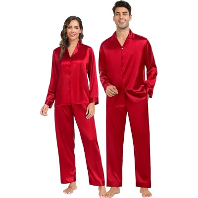 Couples Matching Pajamas Sets christmas pjs for family Silk Satin Long Sleeve Sleepwear Soft Button Down Pjs Set S-XXL