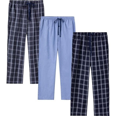 Mens Pajama Pants Set Cotton Lightweight Plaid Sleep & Lounge Pants, PJ Bottoms with Pockets and Button Fly