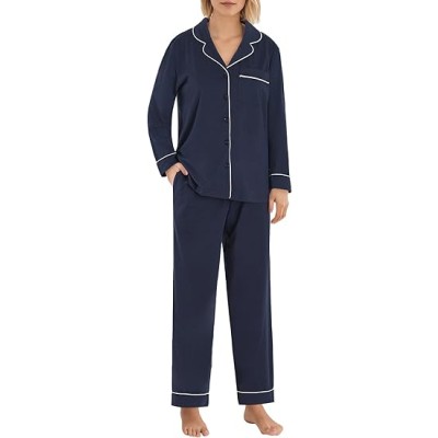 Women's Petite Size Button Down Pajamas Set Long Sleeve