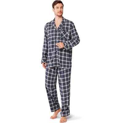 Mens Pajama Sets, 100% Cotton Flannel Sleepwear Soft Plaid PJ Set Loungewear