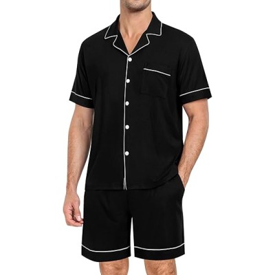 Mens Pajama Set Short Sleeve 2 PCS Sleepwear Button Down Soft Loungewear Modal Set Pj Set with Pockets S-3XL