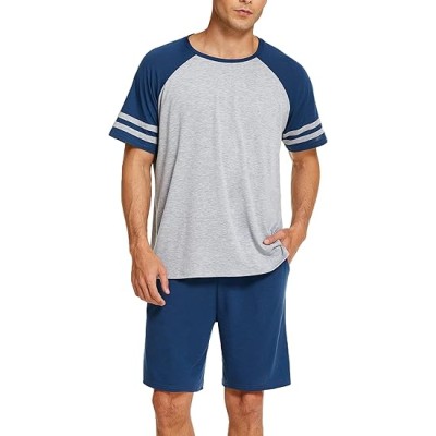 Mens Pajama Short Sets Short Sleeve Crewneck Pajama Lounge Set Raglan Sleepwear