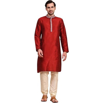 Men's Tunic Art Silk Kurta Pajama Set Wedding Party Dress