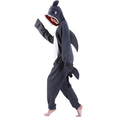 Cartoon Unisex Animal Grey Shark Costume Pajamas Adult Kids Teen Women Men