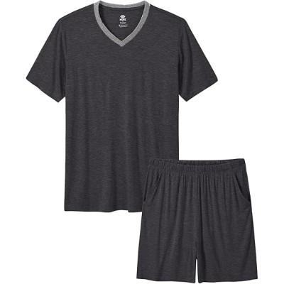Mens Pajamas Set Summer Soft Pajama Short Set Lightweight Pjs Sleepwear 2 Piece Lounge Set With Pockets S-3XL