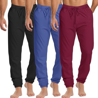 3 Pack: Men's Pajama Joggers -lightweight Pj Bottoms Lounge Pant Drawstring Pockets Elastic Banded Ankle Sleep Pant