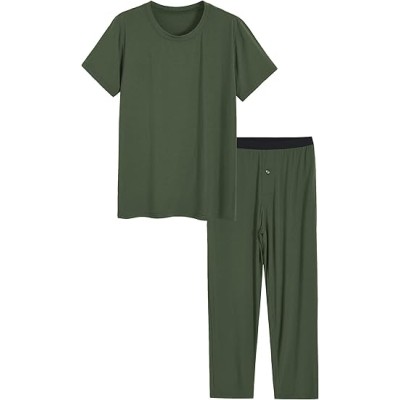 Men's Viscose Pajamas Set Shirt and Pants with Pockets