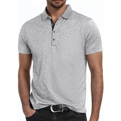 Mens Polo Golf Shirts Casual Short Sleeve Button Up Collared T-Shirt Fashion Work Business Tee Tops
