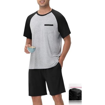 Mens Pajamas Set Summer Soft Pajama Short Set Lightweight Pjs Sleepwear 2 Piece Lounge Set With Pockets S-3XL