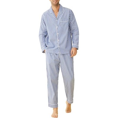 Men's Lightweight Cotton Pajamas Long Sleeves Shirt Pants Set