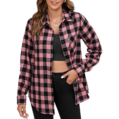 Plaid Shirts for Women Casual Button Down Flannel Shirt Plus Size Roll Up Long Sleeve Checkered Blouse Tops