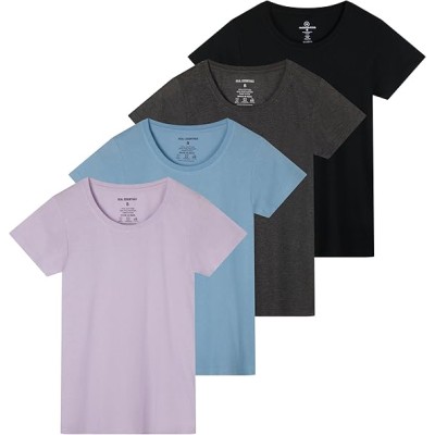 4 Pack: Women's Classic-Fit Cotton Short-Sleeve Scoop Crew Neck T-Shirt (Available in Plus Size)