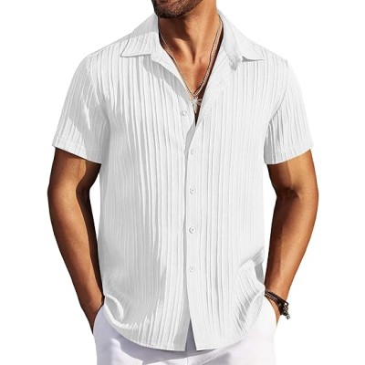 Men's Casual Shirts Short Sleeve Button Down Shirts Fashion Textured Summer Beach Shirt