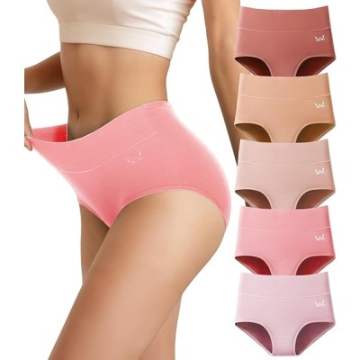 5 Pack Womens Cotton High Waisted Full Coverage Underwear(Regular & Plus Size)