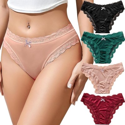 Lace Underwear for Women Cheeky Bikini Womens Underwear Pack Sexy Lace Wasit Hipster Brief Panties for Ladies