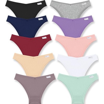 10 Pack Womens Cotton Underwear Sexy Stretch V-Waist Ladies Bikini Panties Low Rise Cotton Cheeky Hipster S-XXL