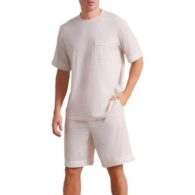 Mens Pajama Set Short Sleeve V Neck 2 Piece Nightwear Shorts With Pockets Summer Sleepwear PJS for Men