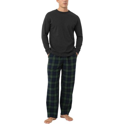 Men's Pajama Set 100% Cotton Flannel Top Long Sleeve & Bottom Pants Plaid Sleepwear PJ Sleepwear Lounge Comfy M79/M95