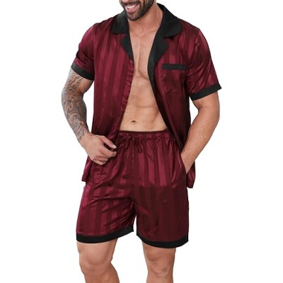Mens Pajamas Set Satin Silk Pajama For Men Sleepwear Shorts Sexy Nightwear Button Down 2 Piece