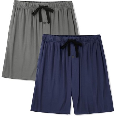Men's Pajama Shorts Soft Breathable Lounge Relaxing Comfy Sleepwear Pajamas Bottoms with Pockets 2 Pack