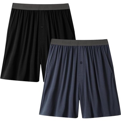 Men's Pajama bottoms Short Pants Soft Comfy Breathable Lightweight Lounge Pj Shorts with pockets 2 Pack