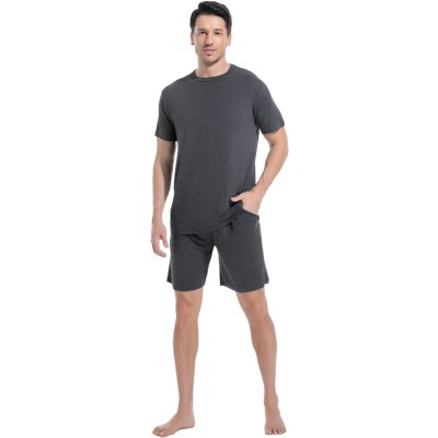 Mens Pajama Set, Soft Short Sleeve Lounge Set Pullover Pjs 2 Piece Outfits with Pocket