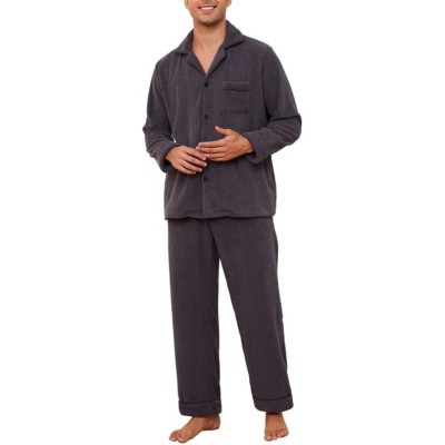 Mens Fleece Pajama Set, Soft Warm Long Sleeve Sleepwear with Pockets Cozy Button-Down Pjs for Men