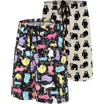 2 Pack Mens Pajama Shorts Cotton Sleep Bottoms with Pockets & Drawstring