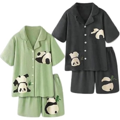 Matching Pajamas For Couples Panda Print 2 Pieces Loungewear Top and Short Homewear Set