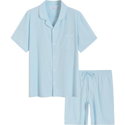 Mens Pajamas Set Summer Soft Pajama Short Set Lightweight Pjs Sleepwear 2 Piece Lounge Set With Pockets S-3XL