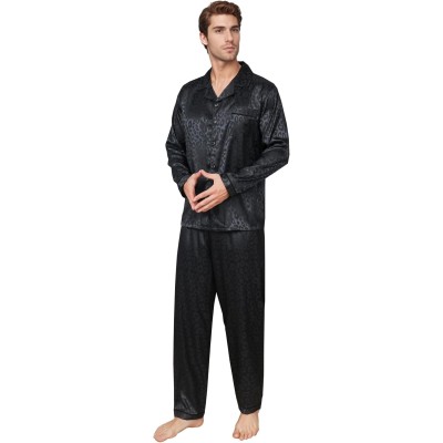 -Mens Silky Satin Pajamas Set Long Sleeve Top and Long pants Nightwear Button-Down Pj Sets Sleepwear