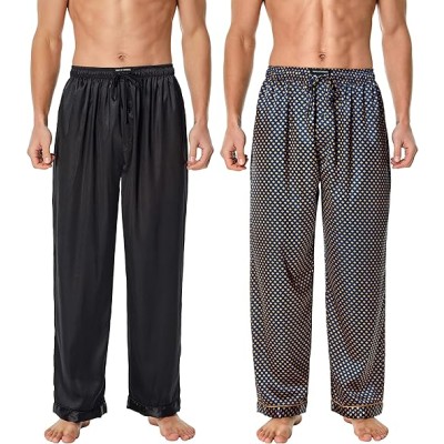 Men's Satin Silk Pajama Pants Long PJ Bottoms, Lounge Sleep Pants with Pockets Pack